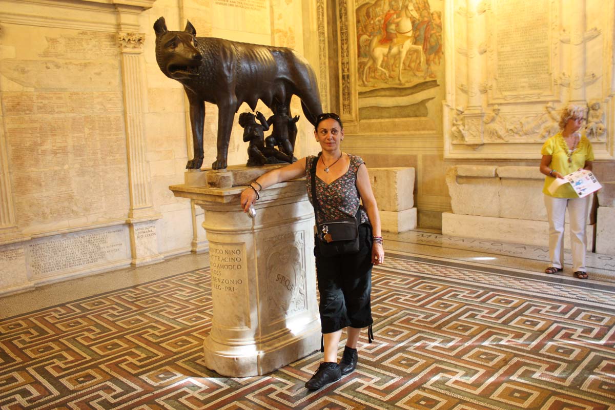 Od svega viđenog izdvojili bi kip Marforia, bradatog diva koji se odmara, a predstavlja riječnog boga. Smatra se da potječe iz Augustova foruma. Neko od renesansnih kipara dodao mu je simbole mora i smjestio ga ovdje da nadzire fontanu. Nadalje dojmljiva je dvorana filozofa i careva. U muzeju se nalazi najstariji simbol Rima brončana vučica. Potječe iz V st. prije krista a izrađena je u jednoj od Etruščanskih ili Grčkih radionica ondašnjeg vremena. Ona je istodobno i zaštitnica i hraniteljica, na oprezu je dok se blizanci Romul i Rem hrane njezinim mlijekom. Kratko ćemo se osvrnuti na znanu legendu. Rim je po njoj osnovan 753 g. prije Krista kada su blizanci Romul i Rem sinovi Marsa i Vestalke koje je zli ujak bacio u rijeku Tiber a pronašla ih je vučica i othranila, osnovali naselja na brežuljku Palatinu. Romul je prilikom jedne svađe ubio Rema te se njegov Rim nastavio razvijati. Da je bilo obrnuto Rim se danas ne bi zvao Roma nego Rema.