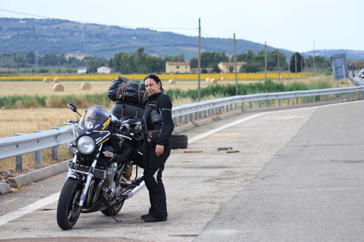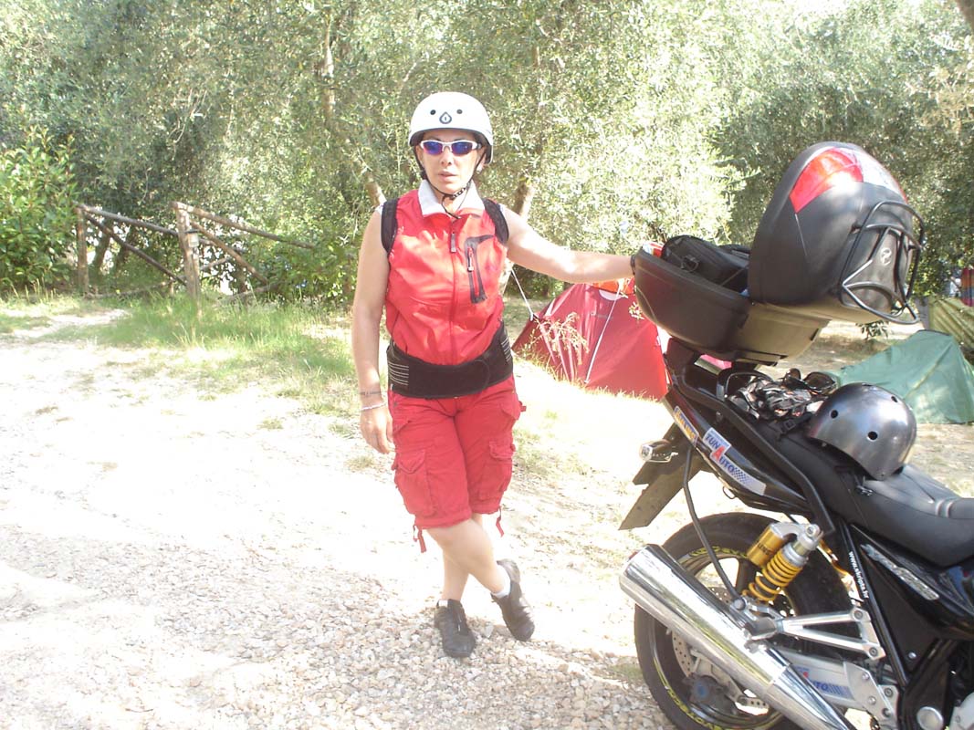 Dolazimo do Marine di Pisa u kamp Internacionale. Camp u Marini di Pisa pravi je zgoditak. Ima vlastitu plažu, disco, animatore i nezaboravni beach party. Dok smo tražili mjesto na kojem ćemo postaviti šator provlačio sam se motorom između dvije ograde nalik coralu. Netreba ni sumnjati da sam bočnim torbama zapeo za ogradu. Desna torba pukla je kao vrećica za pekarske proizvode i otkrila svoju unutrašnjust. Ljeva je prošla nešto bolje no svejedno i ona je dobro zjevnula. Kakav peh tj. moja brzopletost, (glupost). Vidite sretna okolnost je ta što je moj partner i suvozač spreman na sve nedaće koje ja prouzročim. Osoba visokog rizika poput mene mora pored sebe imati nekog strpljivog i punog ljubavi tko se može nostiti sa svim izazovima koje nosi život samnom. Naravno Nada je sa sobom ponijela i pribor za ovakve situacije i nevjerojatnom spretnošću i umijećem sašila obije torbe narednih dana (bolje nego Givijevi tvornički majstori). I još nešto: malo je čvrstih momaka, a pogotovo žena koje bi izdržale ove silne kilometre u svakakvim vremenskim uvjetima i situacijama koje smo zadnjih godina zajedno izvezli na dva kotača. Sretnik sam i hvala Ti Nado za sve što činiš za mene, Volim Te!