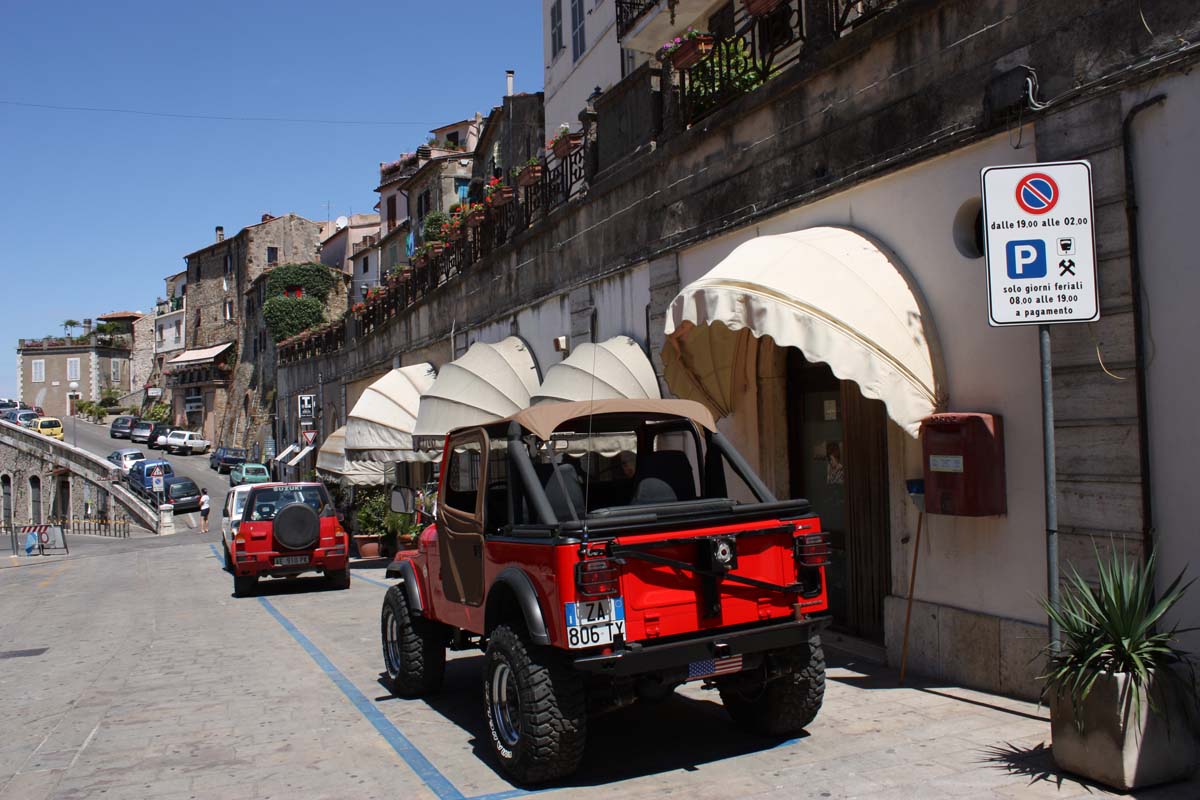 Pogled sa brda je nazaboravan pa maksimalno koristimo blagodati digitalne fotografije. Vrijeme se malo namrštilo i nije za plažu stoga se vraćamo u Marinu di Grosseto gdje se prepuštamo jelu i pilu u campu. Stari Capo prolazi kraj našeg stola uglavnom uvijek kad jedemo, pa zastaje i kaže: sempre manđare,... basta manđare!!!!! Sprema se nekakav Tsunami, a mi smo još uvjek jedini sa šatorom u campu. Svi skidaju tende sa kampera i sa suosječanjem gledaju u nas. Susjedi Talijani Ilarija i Norman pozvali su nas k sebi ako bude oluje. Još se ništa ne dešava pa odlazimo do grada u potrazi za novim šatorom ako nam bude potreban. Dok parkiramo pred trgovinom prilazi nam jedan mlađi lik, pozdravlja nas i pita jesmo li iz Hrvatske. Ugledao je naljepnicu Moto Pulsa koju imamo na vjetrobranu. Kaže da dolazi kod nas na Grobnik i u Rijeku, i da povremeno lista najbolje moto novine na svijetu MOTO PULS, naravno kada ih uspije pribaviti. Vidim da dosta zna o našem Kvarneru a o Grobniku gotovo sve. Nevjerovatno, Talijan iz središnje Italije čita(predpostavljam, lista) Moto Puls i vozi po Grobniku. E svaka čast. Grlimo se s njim i odlazimo svojim poslom. Šator smo našli ako nedaj bože ustreba. Vrijeme se malo smirilo.