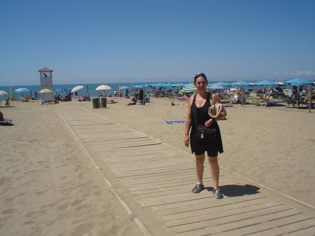 Povratkom u camp družimo se sa mladim susjedima Talijanima iz Torina. Do danas smo obišli toliko Toscanskih top destinacija da ih nebi sa sigurnošću mogao sve nabrojati a da ne zavirim u preglednik slika u mom Canonu.Stoga smo odlučili bar danas ostati na plaži u Marini di Grosseto. Prethodno veće sam u campu izgubio naočale čitulje. Stari Capo organizirao je opsežnu potragu za njima kakvu nebi uspjeli osmisliti ni carabinieri, niti polizia locale. To je iznjedrilo pozitivan rezultat. Due bambini su pronašli moje očale u mnoštvu borovih grančica i iglica, a stari Capo sve je popratio uzvicima fortuna, fortuna!! Odlazimo na plažu koja se pruža u dužini od 15-tak km i cjela je pješčana. Izgleda kao u filmovima iz 50-tih godina, s tom razlikom da su u ono vrijeme suncobrani bili prugasti, a danas su jednobojni. Puno je tu ljudi i prekrasnih curica,pravih ljepotica.