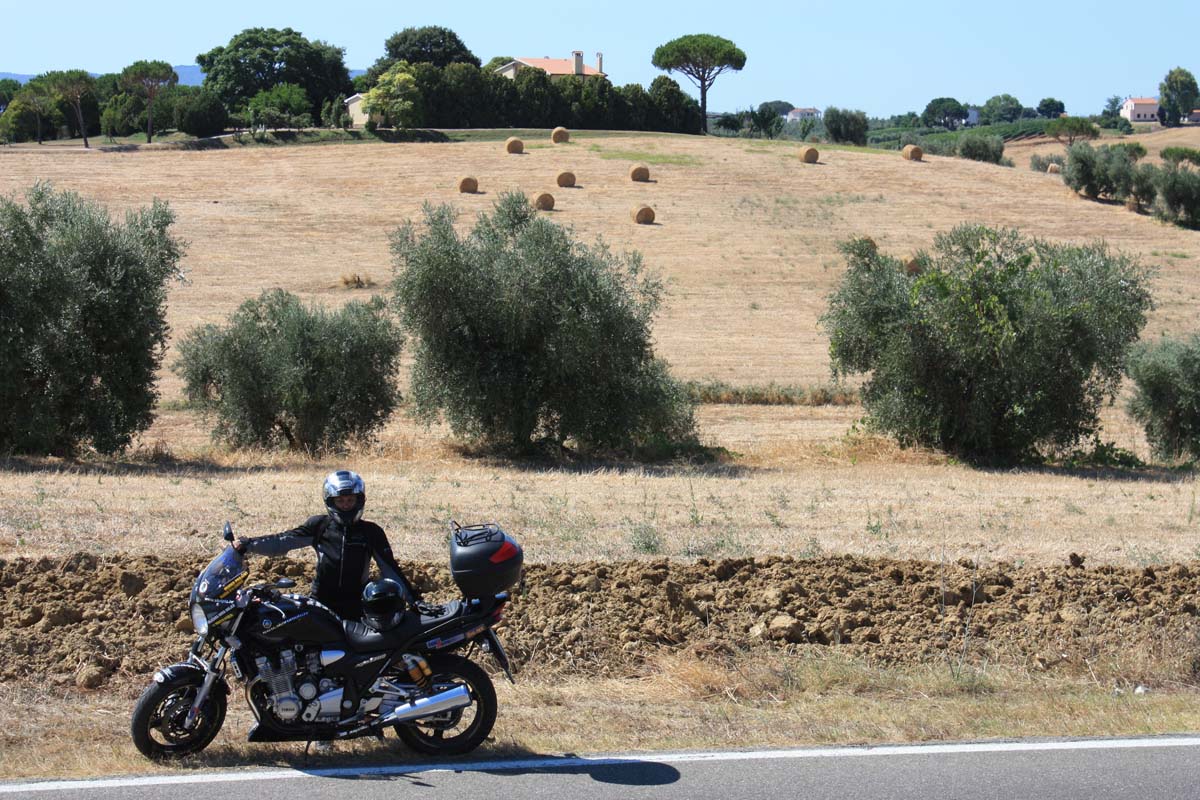 Ustali smo po običaju kasno pa poslije jutranje kave i croasana odlazimo put Pitigliana. Obukli smo se u punu opravicu jer nas očekuje nekih 250 km vožnje. Krajolik kojim se vozimo teško je usporediti sa bilo kojim dosada viđenim. Nepregledni brežuljci, pokošena polja, vinske ceste, sve je gotovo sterilno čisto i uredno. Svaka travka, masline i polja su kao sa razglednice. Savršeni sklad prirode povremeno poremeti pokoji ljuti racer koji ovim cestama juri sa sasvim drugim namjerama. On naravno prestiže vrijeme, a mi turisti uživamo u predivnom pogledu koji se otvara iza svakog zavoja.