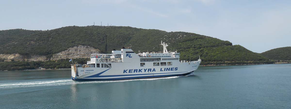 Vjerujemo da će idući mjesec kamp biti pun gostiju,raditi će i restoran pa će mačja bića biti punih trbuha, a beba maca izrasti će u veliku i lijepu šarenu mačketinu. Na izlasku iz kampa Dionisius pozdravljamo se s Nikosom i zahvaljujemo mu na svemu s nadom da ćemo se i u budućem vremenu vidjeti na ovom lijepom otoku. Ferry za Igoumenitas već je na svom mjestu dok se u njega ukrcavaju automobili i kamioni. Osoblje ovog plovila raspoređuje ih takvom preciznošću da su posloženi kao šibice u vlastitoj kutiji. Vozači kamiona pravi su umjetnici manevriranja u ovakvim uvjetima. U 9,30 i mi se ukrcavamo na trajekt. Motocikli se dodatno vežu užadima za trup broda, a parkiraju se blizu pramca kako bi bili prvi pri iskrcaju. Vrućina je velika već sada ujutro pa se povlačimo u klimom rashlađeni bar trajekta. Moto hlače i jakne skinuli smo sa sebe a obukli bermude i majice kako bi barem na brodu bili komotni.