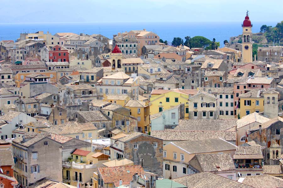 Nova utvrda na kojoj se trenutno nalazimo izgrađena je između 1576 i 1645. god. a sa starom tvrđavom povezana je podzemnim tunelima. Krunu pogleda na grad i njegovu vizuru čine tornjevi crkava,posebno onaj raskošne crkve Agios Spiridon koja se nalazi usred mnoštva starih kuća i trgova. Nakon što smo oči odmorili ovim ljepim prizorom grada i njegove osobnosti spuštamo se s utvrde do pizzerije u centru gdje njezin vlasnik već po običaju naganja žgoljavog konobara vičući „Nikola. . Nikola“. . !!!!!!Nikola se jadan sapliće oko gusto raspoređenih stolova što stvara komičnu sliku na terasi.
