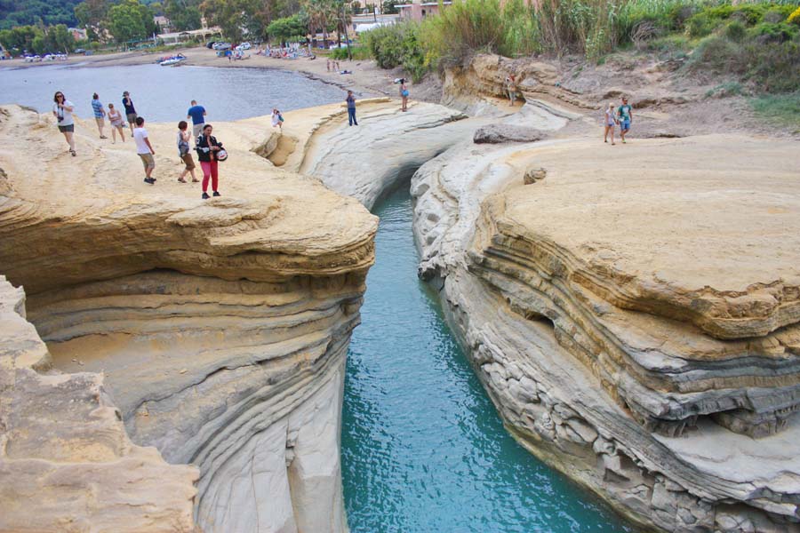 Put je to kroz nepregledne nasade maslina i plodnih polja. Maslina je ovdje više nego li u bilo kojem dijelu mediterana. Vozeći se uskom brdskom cestom uskoro dolazimo do Liapadesa,sela na vrhu brijega. Opojni miris limuna i naranči koji su već potpuno zreli širi se cijelim mjestom. Šetnja tijesnim uličicama postaje pravo zadovoljstvo dok grane limuna i naranči svinute preko ograda nude svoje plodove prolaznicima. Naše današnje odredište su razvedene uvale Paleokastritse do kojih stižemo vijugavom i zahtjevnom cestom preko Lakonesa, još jednog fantastičnog brdskog sela. Odavde s tkzv. balkona Jonskog mora uživamo u gotovo nestvarnoj panorami stjenovitih uvala na čijim su obalama pješćane plaže koje se stapaju s tirkizno plavim morem.