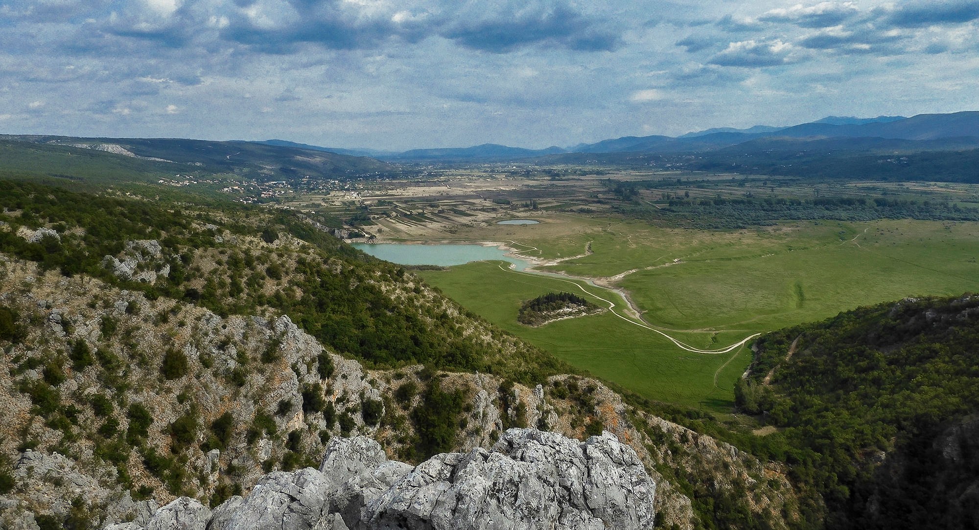 Nakon par kilometara vožnje skrenuo sam lijevo prema Donjem Prološcu. Spuštajući se cestom, na par mjesta otvorio mi se krasan pogled na Prološko blato, još jedan hidrografski fenomen ovoga kraja.