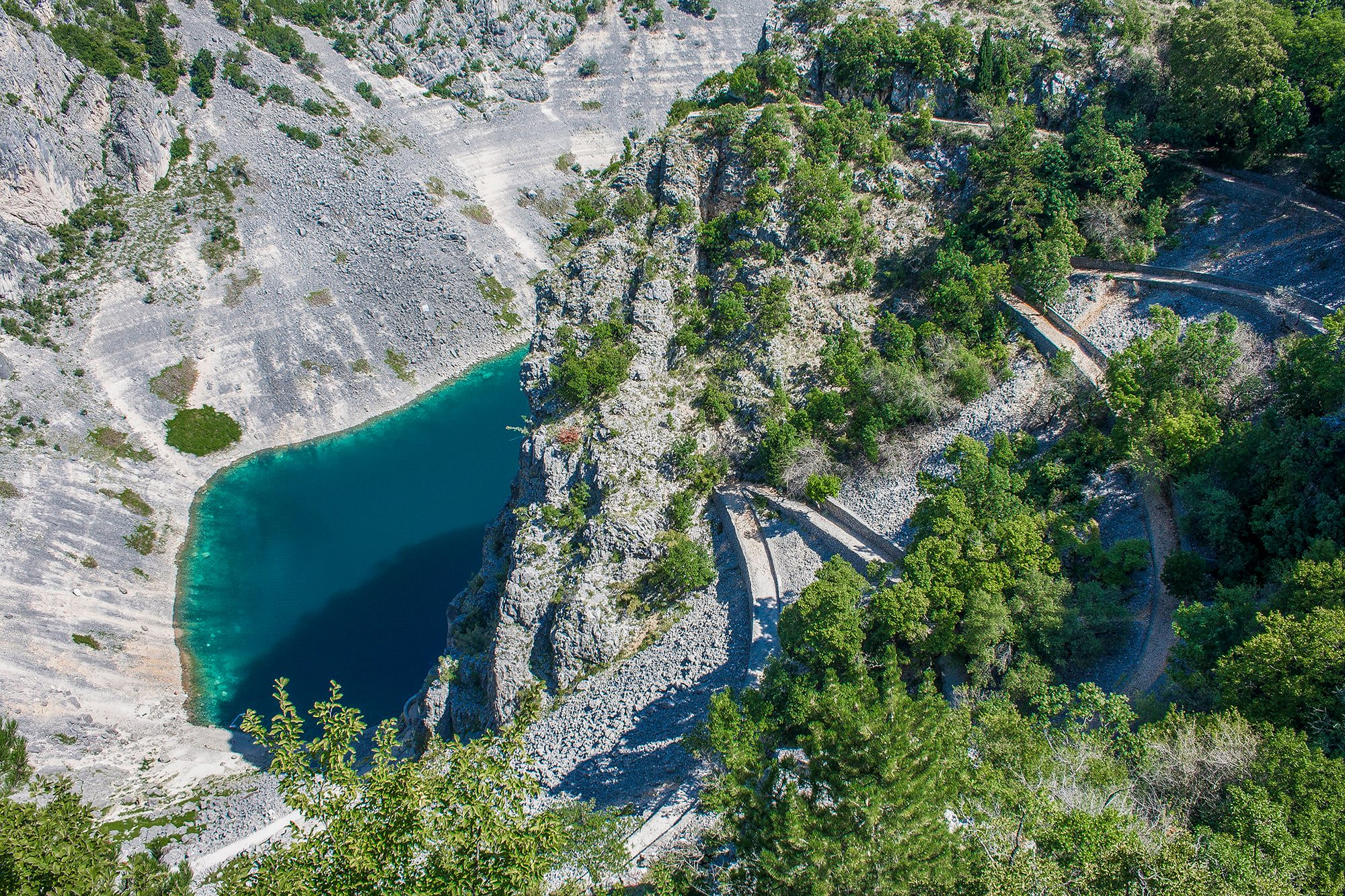 Kako ovdje ne bi bio kraj potrudio sam se vratiti do Prološca odakle sam se uputio prema selu Ričice i još jednog prekrasnog jezera, Zelenog. Za razliku od svih drugih jezera ovo jezero je umjetno. 1985. godine sagrađena je brana i dvije male riječice, Vrbica i Ričina potopile su četiri zaseoka i stvorile Zeleno jezero. Jezero je ime dobilo po boji vode koja je nekada možda i bila zelena, dok je danas svijetlo plava, a to je rezultat otopljenog vapnenca. Godina 2012. bila je izuzetno sušna i jezero je presušilo. Kažu da se tada vidio stari most i ostaci nekadašnjih kuća i vinograda.