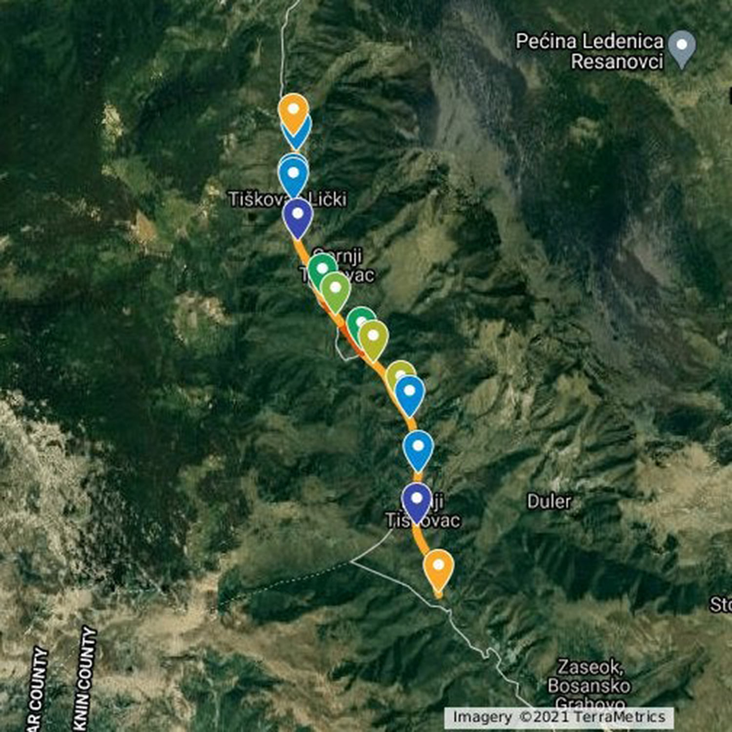Tiškovac lijepo je vidljivo sve gore spomenuto, a trasom se dan danas odvija nešto malo lokalnog prometa. Putem dalje do Ličke Kaldrme sve isto, malo Hrvatska, malo Bosna i povratak na asfalt. Tek dolaskom do sela Dugopolje sigurni smo 100% da smo na teritoriju Republike Hrvatske i da će nas put dalje odvesti u Srb.