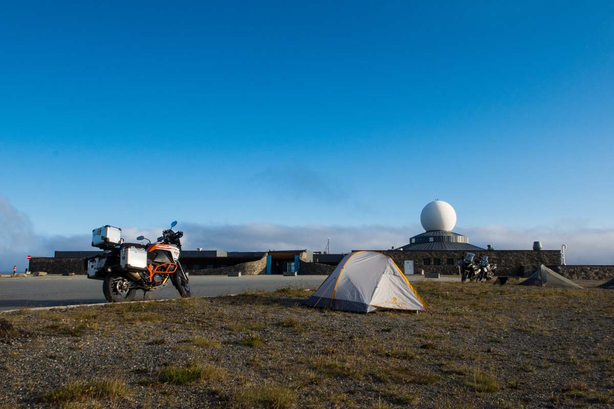 Sad kada imam jednu od ljepših uspomena na ovo putovanje, ćaskam kojih pola sata s Jeromeom. Pozdravljamo se uz želje za sretan povratak te se krećem malo ugrijati u centar za posjetitelje. Centar je otvoren do 1 ujutro, ali budući da je već skoro 23 sati, restoran više ne radi, pa se zabavljam kupovinom suvenira. U ponoć izlazim, a smještaj u ovo doba ne mislim tražiti, pa parkiram motor uz sam rub asfalta i vadim šator. Tu ćemo prenoćiti, na Nordkappu.