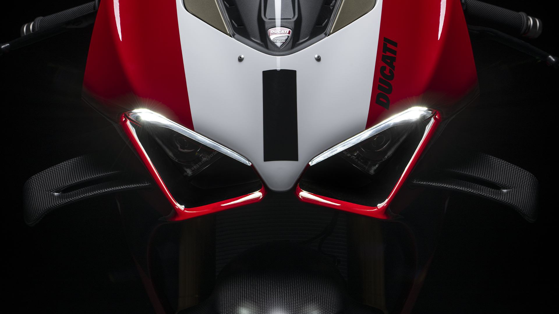 Panigale V4 R s punim trkaćim ispuhom od titana i otvorenim poklopcem spojke od ugljičnih vlakana, nije uključen u standardnu opremu, ali je dostupan kao Ducati Performance dodatak.