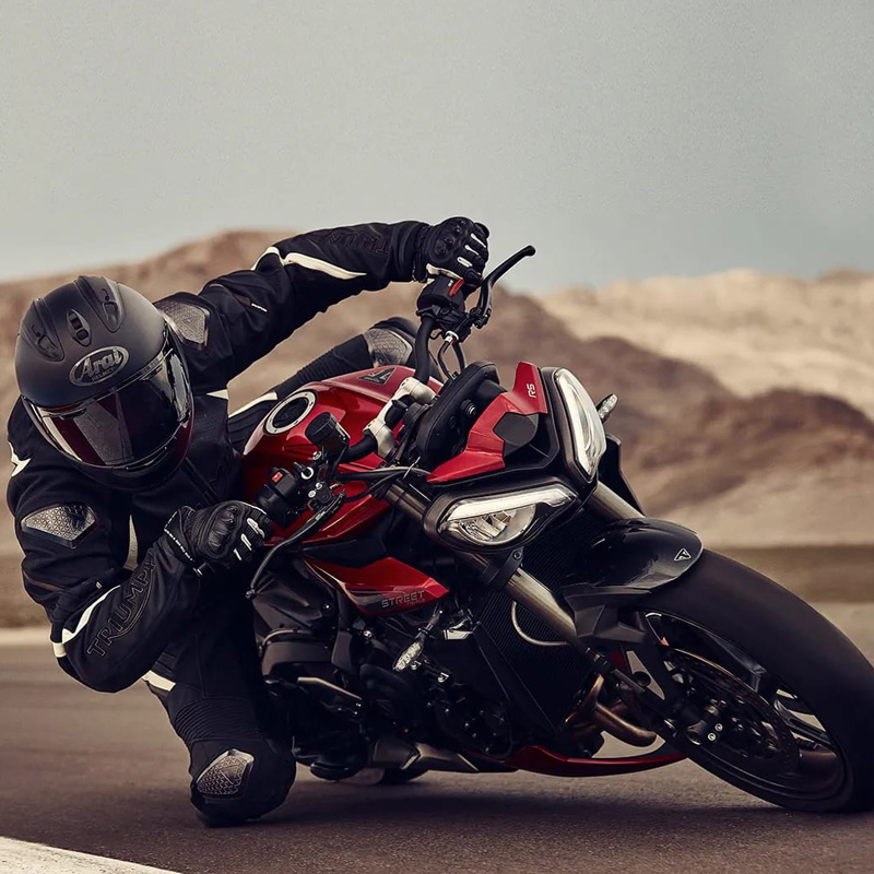 Triumph Street Triple je jedan od najpoznatijih modela ove britanske marke. Opremljen trocilindričnim motorom od 765 ccm, Street Triple pruža izvanredne performanse u kombinaciji s agilnošću i laganim upravljanjem. Motor isporučuje maksimalnu snagu od 123 KS, uz linearnu isporuku snage i odličan okretni moment. Ovaj model je omiljen među ljubiteljima sportskih naked motocikala jer nudi savršen balans između snage i lakoće vožnje, čineći ga idealnim za svakodnevnu vožnju, ali i brze sportske izlete.